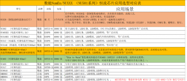 台湾数能NU501-1AXXX(升级版)全系列恒流IC电流分档
